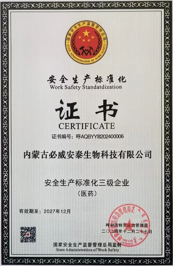 必威安泰取得“安全生產(chǎn)標(biāo)準(zhǔn)化三級(jí)企業(yè)”證書(shū)